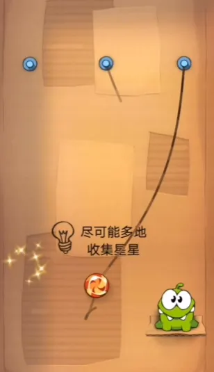 第五款,《割绳子》,这个真是神作吧?操作非常简单,依旧是手指化刀切绳子,绳子会掉下来,然后让着个大眼睛尖牙绿球兽这个小玩意吃到糖就算过关,当时有些关卡没法三星过去,就会一直重复玩,而且前面简单关卡过去以后,后面关卡中还会出现各种道具,就是鼓风机一类的,感觉游戏制作组的脑洞是真挺大的。