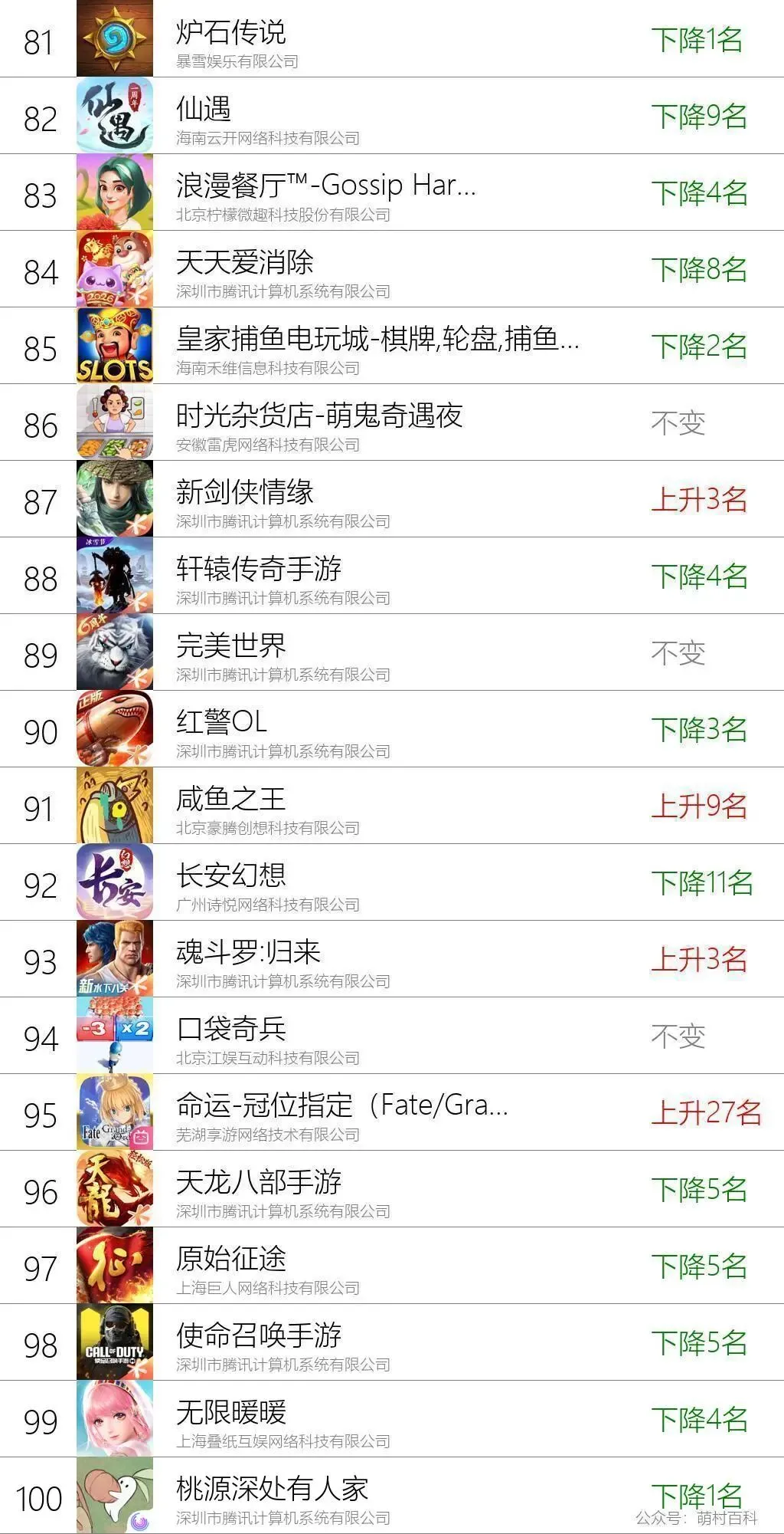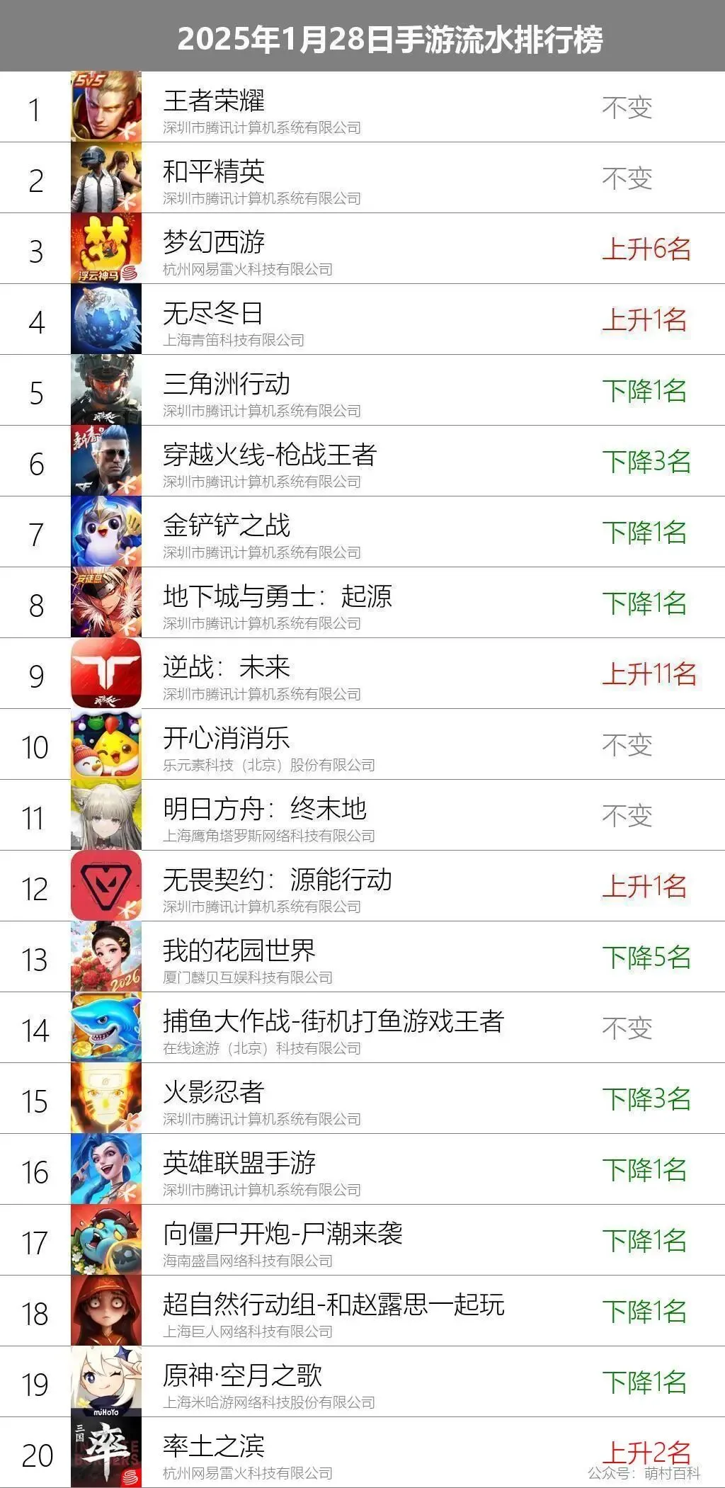 1月28日手游流水排名榜单(文字版)