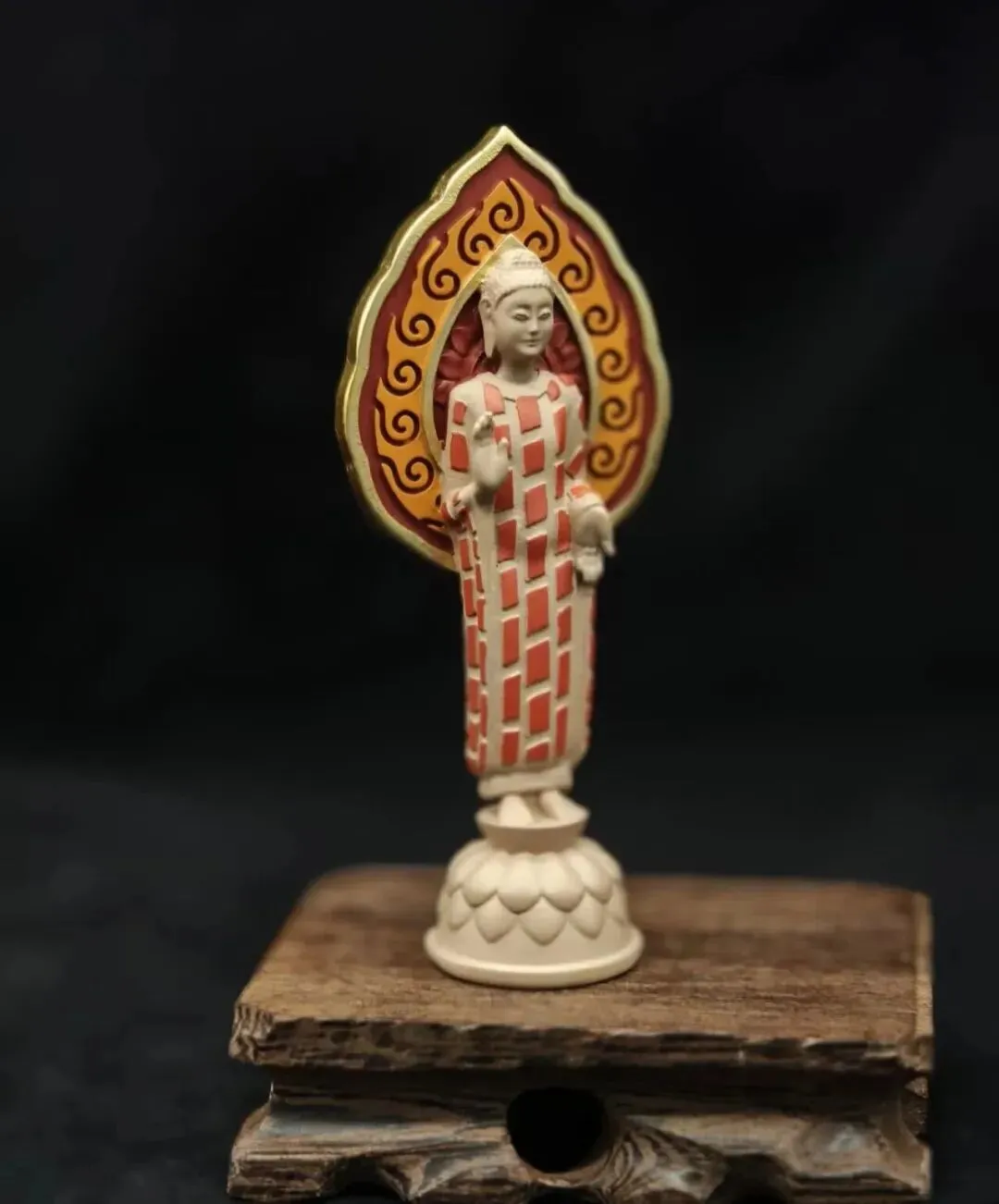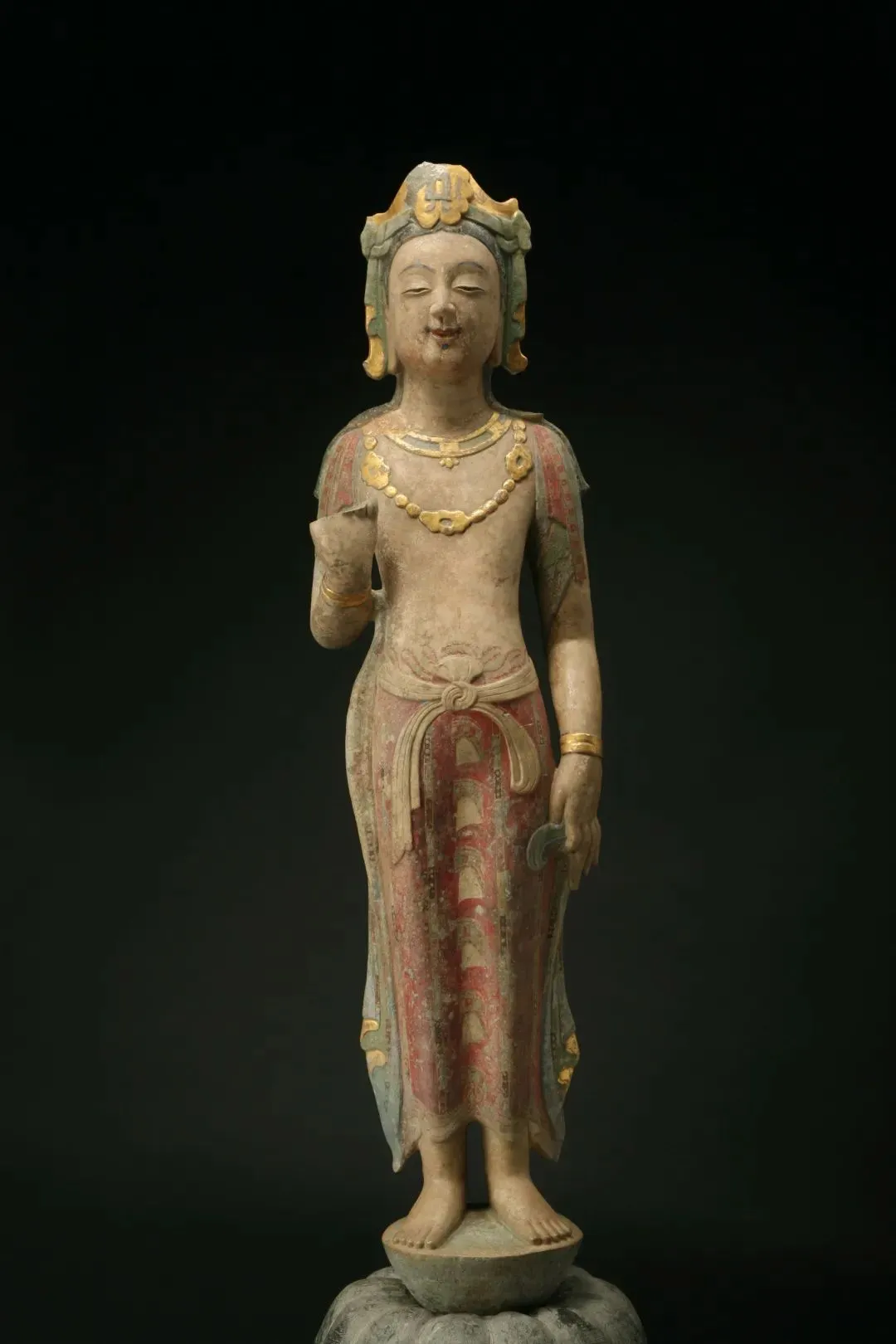 🔸 贴金彩绘石雕菩萨立像