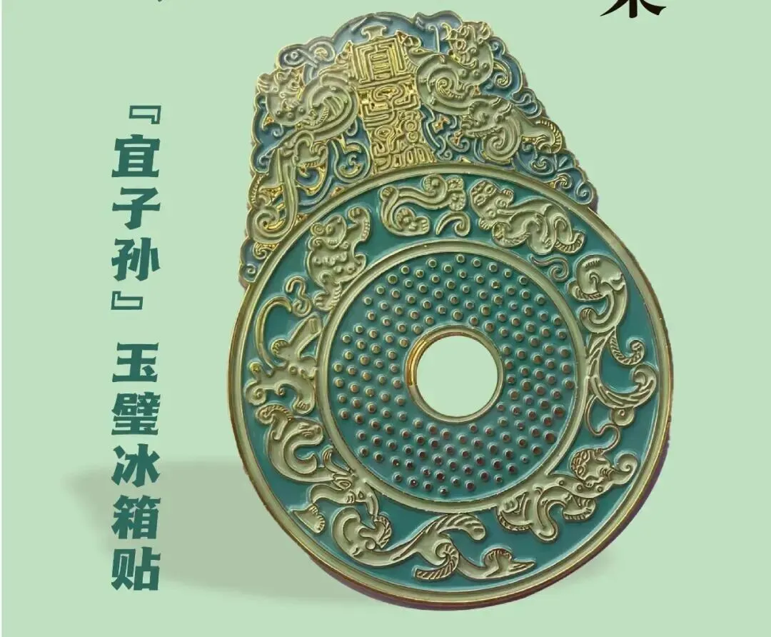 自2024年1月官方文创中心正式落地、自有品牌“青博有礼”注册以来,青州博物馆已围绕镇馆之宝开发380余款文创产品,其中尤以承载美好寓意的明朝状元卷和东汉“宜子孙”玉璧两大IP最受欢迎,形成了“核心IP+多元衍生”的产品矩阵。作为2025年销量最好的文创,这款冰箱贴取材自汉代玉璧的上乘之作——“宜子孙”玉璧,为与原件的白玉墨染相区别,冰箱贴采用金丝碧玉的经典配色,玉璧出廓上方镂雕双龙纹钮,双龙出没于祥云之间,线条流畅、生动活泼,充满着动态艺术的韵律之美。明代赵秉忠状元卷作为青州博物馆的王牌IP,自带“祈福劝学”的文化寓意,其衍生品中销量最好的是纸质复刻品,共开发13款,覆盖折页款、卷轴款、一比一复刻以及缩小版等多种样式。“状元笔墨” 系列:核桃木状元笔,一管握尽青州的温润;“喝” 口墨水,真能涨 “知识”;