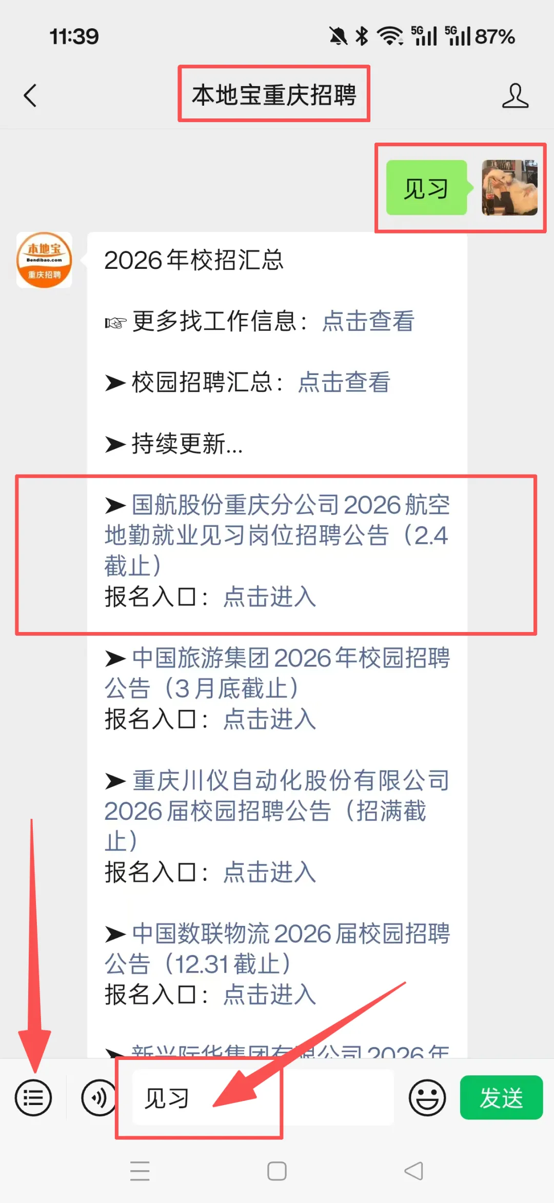 温馨提示:您可以扫描下方二维码,关注【本地宝重庆招聘】公众号,在聊天对话框回复“见习”即可快速获取报名入口、详细招聘公告及更多招聘信息。