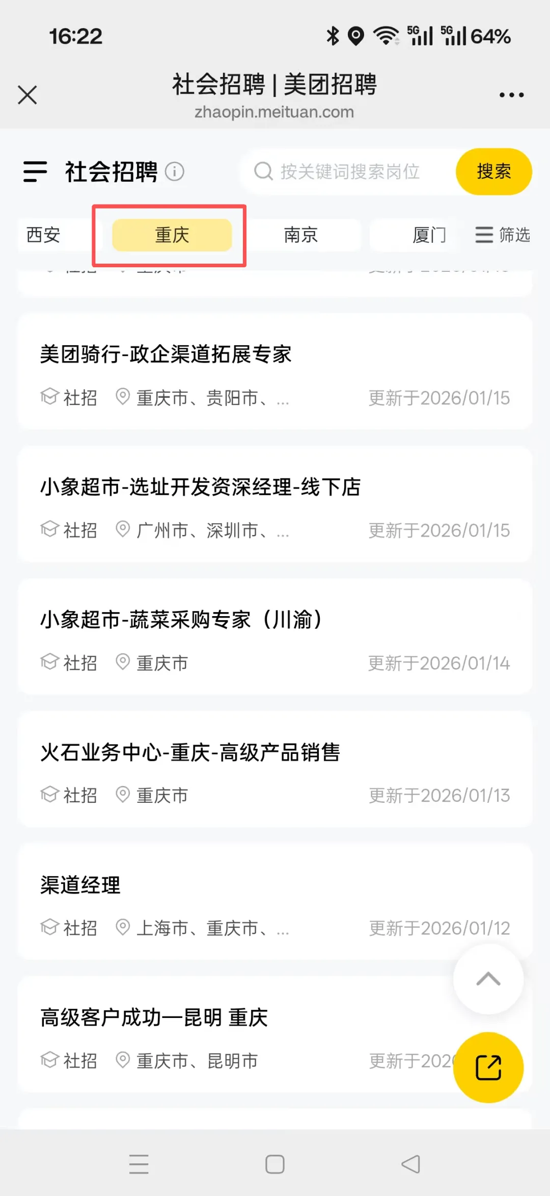 温馨提示:您可以关注【本地宝重庆招聘】公众号,在聊天对话框回复“美团”即可快速获取报名入口、详细招聘公告及更多招聘信息。