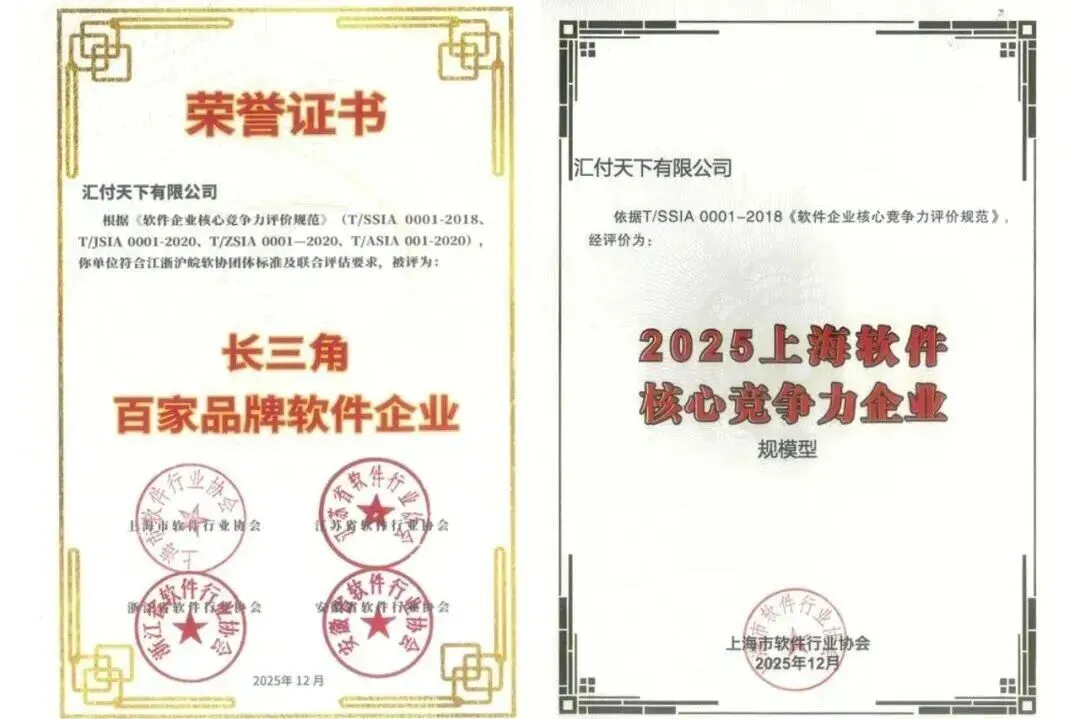【园区企业】软件实力百强、金融科技领军、产业出海30强...汇付天下再获多项荣誉认可