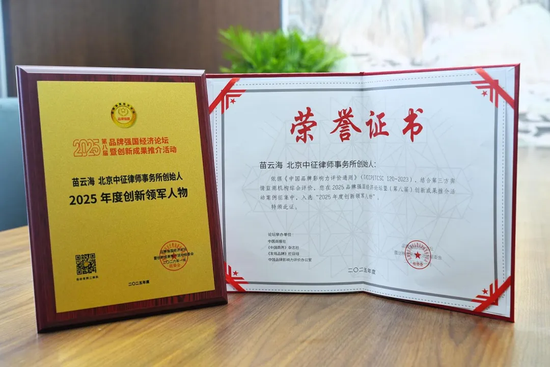 在此次论坛活动中,北京中征律师事务所斩获“2025品牌强国十大优秀律师事务所”;律所创始人苗云海主任获评“2025年度创新领军人物”。