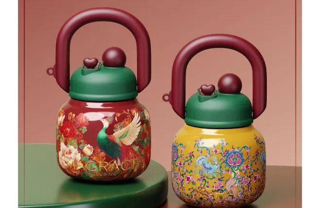 多款精致花纹可选,杯身工艺细腻,兼具视觉美感与质感;U型设计贴合握持需求,握感舒适,便于携带;采用不锈钢材质,具备良好的保温保冷效果,直饮口设计饮用方便。