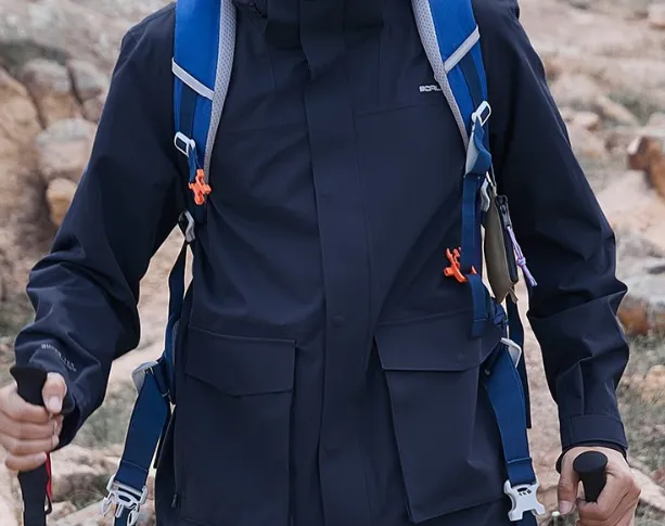 #该冲锋衣配备多用途口袋,满足户外储物需求
