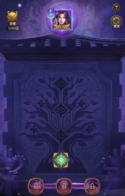 【星图】开启条件:武将达到13星后可开启无双,并解锁星图(目前仅有部分武将拥有无双),通过提升星图上的星位等级可解锁额外属性加成。