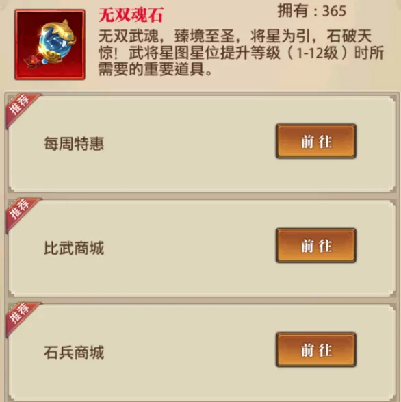无双魂石获取途径:每周特惠、比武商城、石兵商城