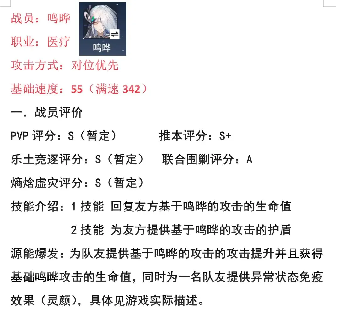 游戏攻略丨《锚点降临》鸣晔培养方案