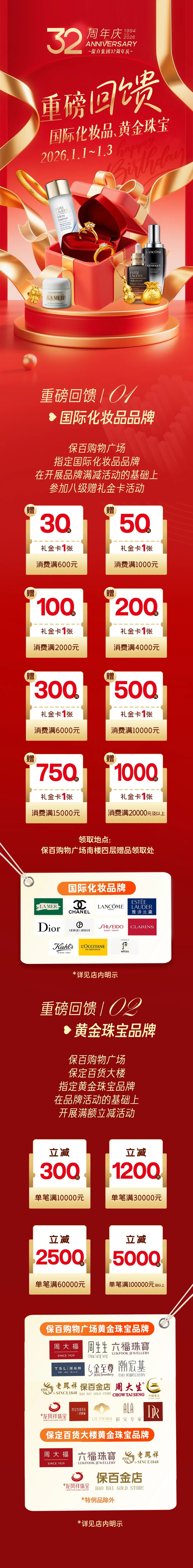 >保百购物广场 | 国际化妆品、黄金珠宝品牌重磅回馈~