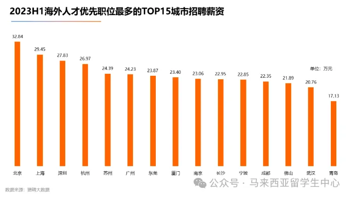 当然,留学生投递简历人数占比最多的也是这三个城市,最期望的工作城市也是这三个,所以北上广在未来仍是留学生的就业目标,这跟城市提供的高工资分不开,毕竟一线城市才容易有高机会和高回报。