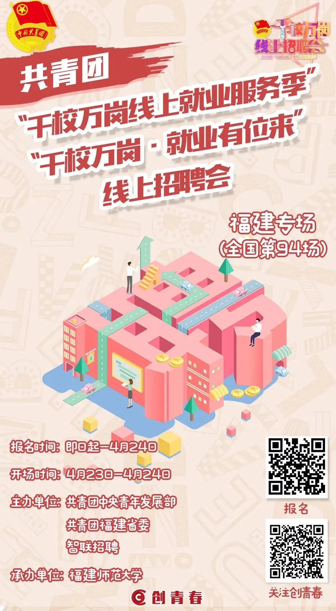 “千校万岗•就业有位来”福建师范大学2020年春季空中双选会就在4月23日-24日!在全民决胜防疫防控阻击战的关键时期,为搭建毕业生与用人平台间高效方便快捷的沟通桥梁,拓宽毕业生就业求职渠道,由共青团中央青年发展部、共青团福建省委、智联招聘主办,福建师范大学团委承办的2020“千校万岗·就业有位来”春季空中双选会,将于4月23日如约而至。