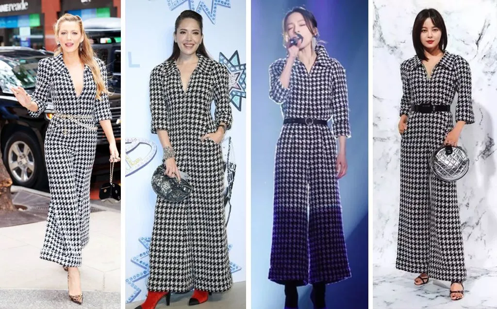 2017秋冬款千鸟格连体阔腿裤真是巨火啊!Blair、许玮甯、张韶涵、辛芷蕾通通都穿了,不论是远观还是近看,还是束条腰带的她们仨更聪明一些。