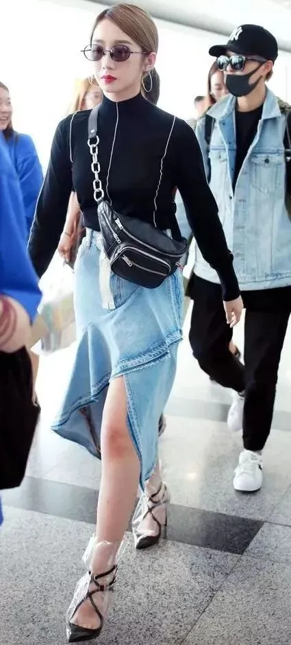 虽说袁姗姗的整体感觉更好,眼镜起到了画龙点睛的作用,但三个人的搭配都没有将这一条非常有层次的荷叶裙穿出美感,要知道侧开叉的半身裙可是妩媚撩人的必备品。