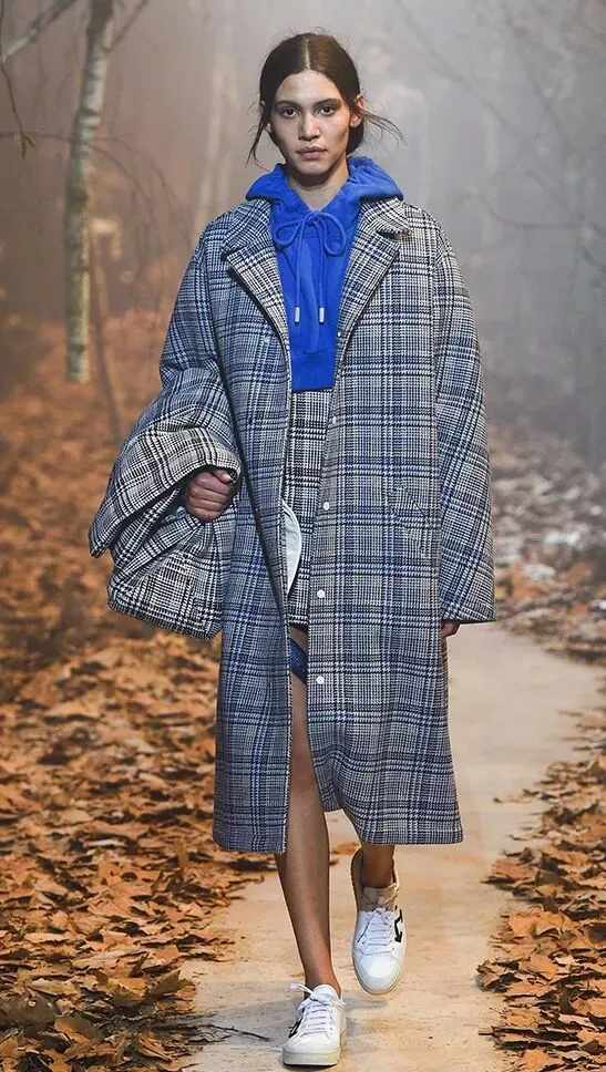 张韶涵、宋茜穿的这件白色格纹呢子外套,虽然来自17春夏系列,但却给人感觉很有18的Style。张韶涵打造的休闲风自然也不差,但是论显身材还是宋茜赢。