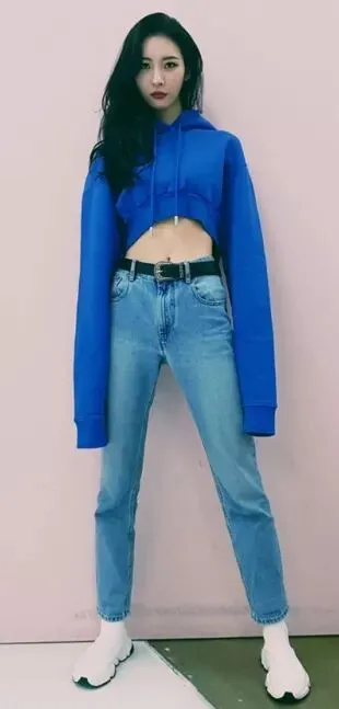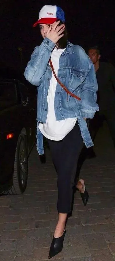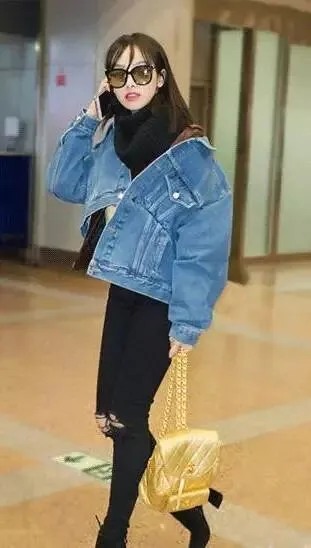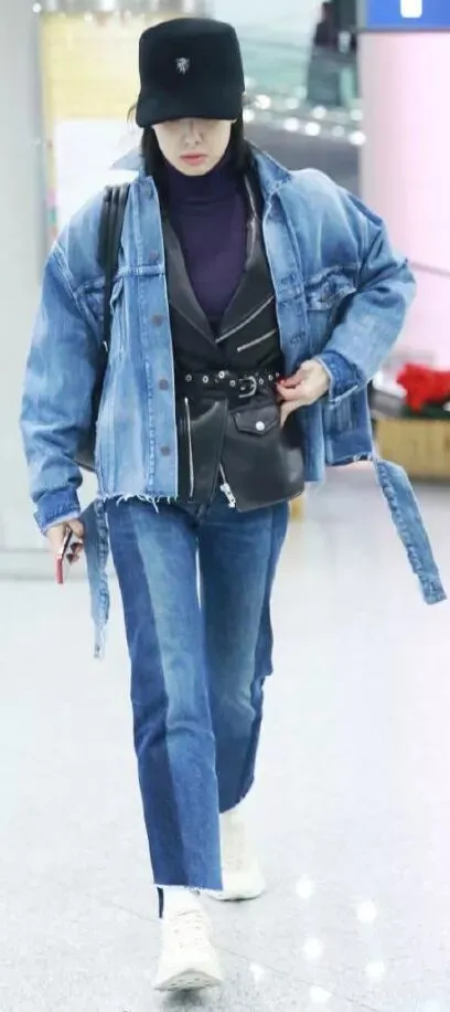 巴黎世家的牛仔上衣,街头风设计。宋茜、奚梦瑶、Kendall中,一个个性很街头、一个偏休闲、一个又中和了些性感。