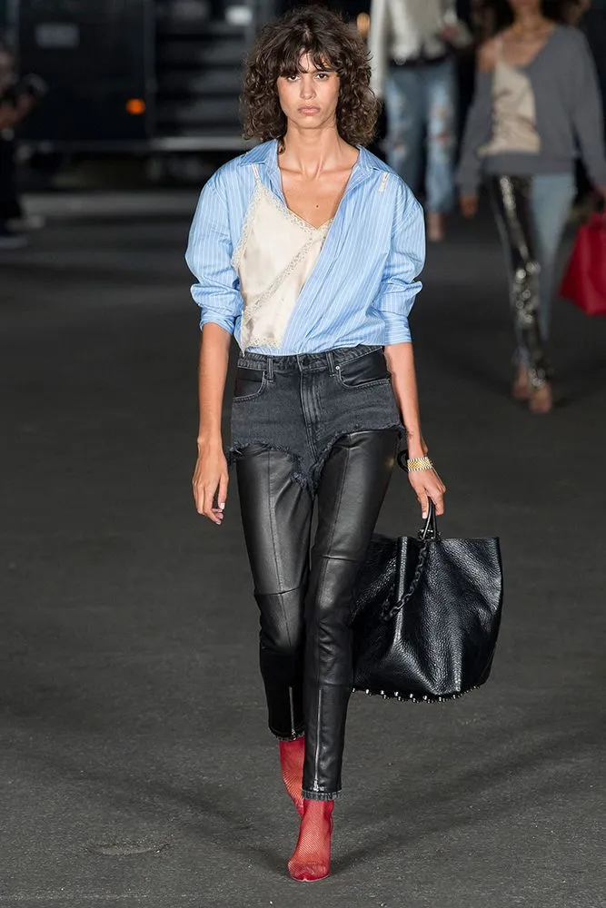 AlexanderWang热度比较高的这两款也是来自2018春夏系列,此系列中的假两件拼接单品非常多,体现着山大王对解构的喜爱。