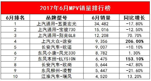 五菱宏光神车依旧蝉联销冠,不过34482辆的销量同比增长却下跌-17.8%,看来是更多消费开始追求中高端MPV。