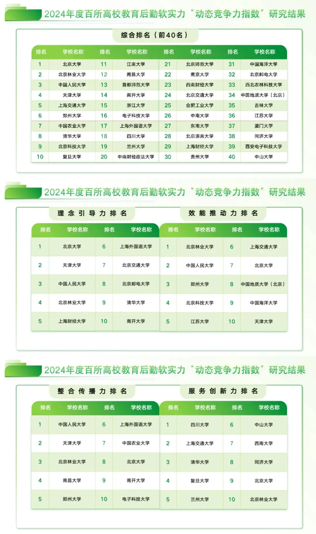 据介绍,2024年下半年以来,研究院对百所高校(75所教育部直属高校、31所各地具有代表性高校)基于“理念引导力、效能推动力、整合传播力、服务创新力”四个维度进行测算,得出该榜单。