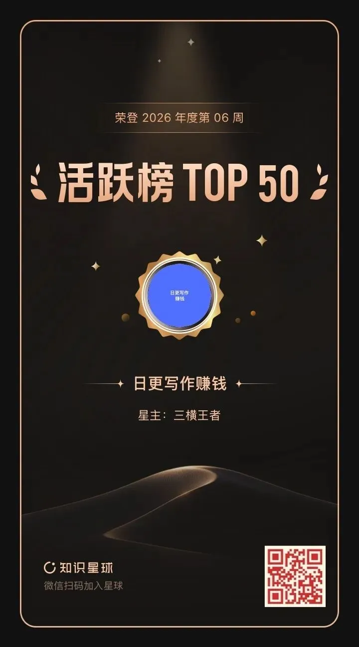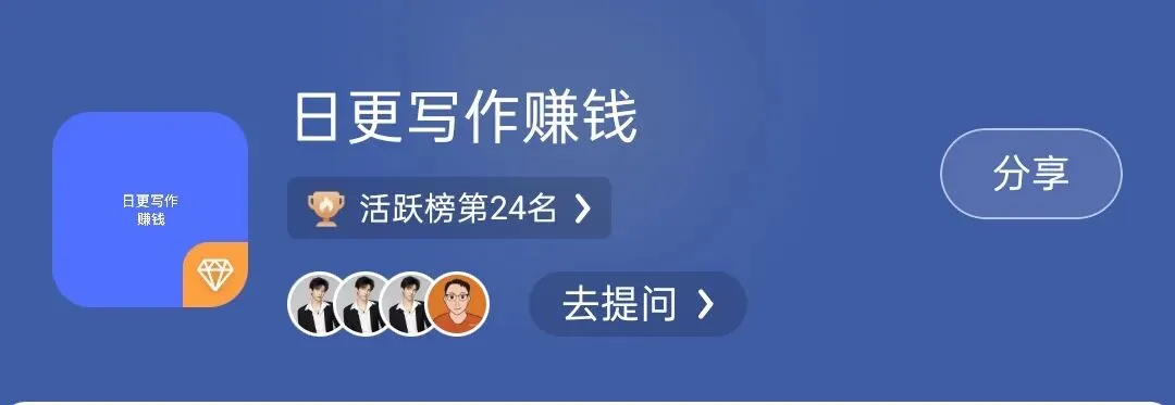 “日更写作赚钱”星球,最高冲到知识星球排行榜Top 24