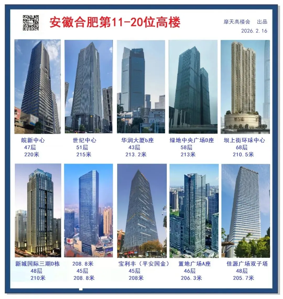 站在 2026 年的起点,回望合肥的城市发展,这些高楼如同一个个坚实的脚印,记录着合肥从江淮小城到科创之都的华丽蜕变。它们见证了合肥的经济腾飞、产业升级和城市更新,也承载着合肥人对美好生活的向往与追求。在未来的日子里,合肥的天际线还将不断被刷新,更多的高楼将拔地而起,但这些排名第 11 至 20 位的建筑,将永远是合肥城市发展史上的重要篇章,永远是合肥人心中不可磨灭的城市记忆。