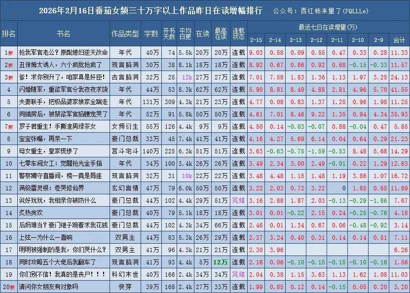 番茄阅读榜范围:30万字以上、已签约未下架、已经开始推荐的番茄原创作品
