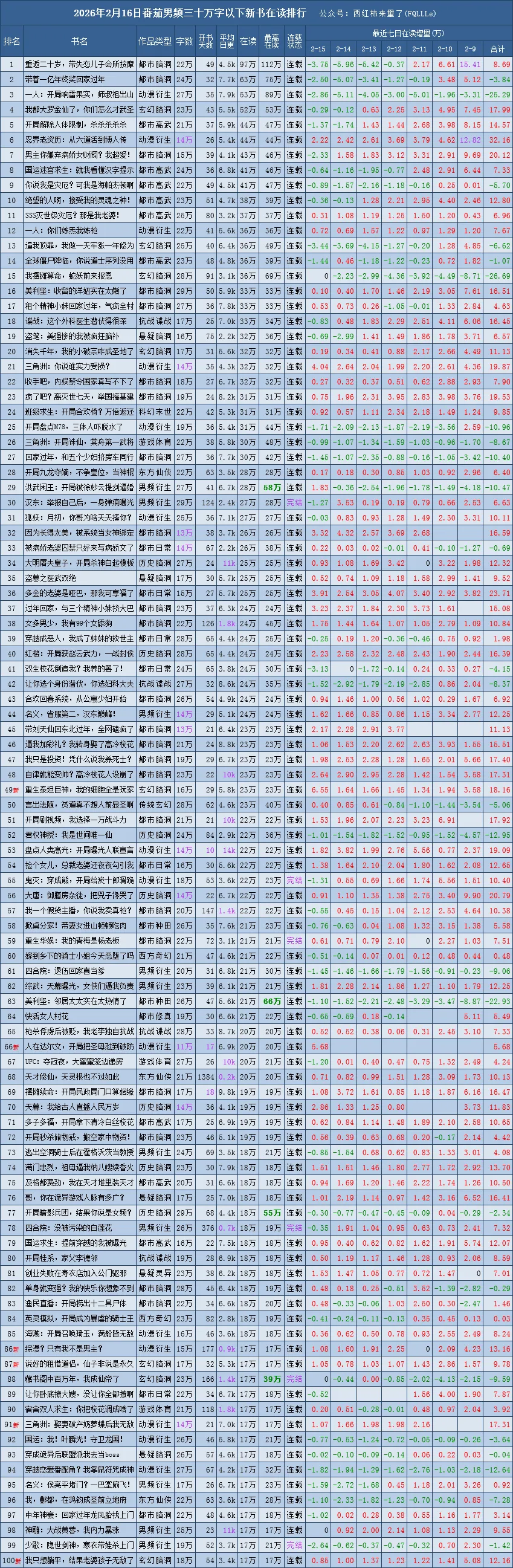 番茄新书榜范围:30万字以下、已签约未下架、已经开始推荐的且未断更,完结未超过90天的番茄原创作品