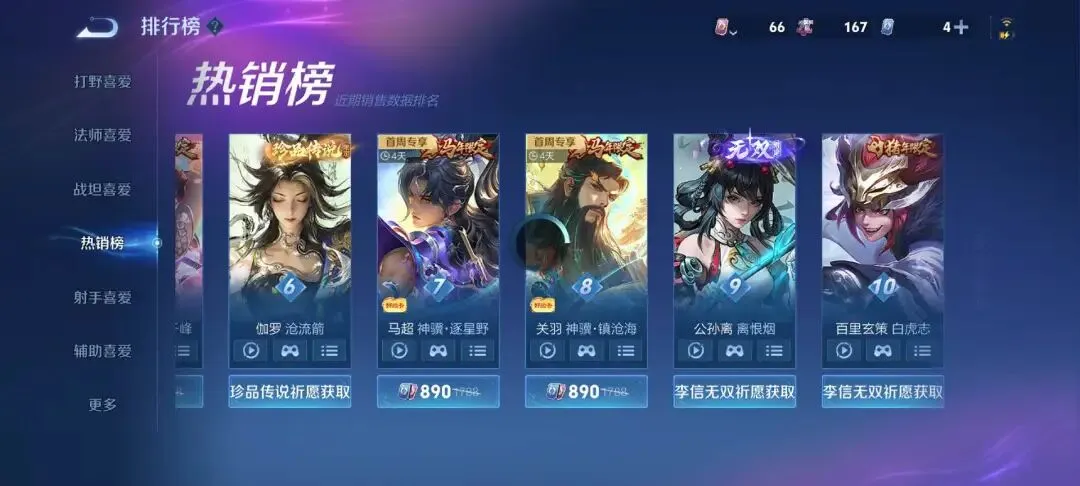 另外马超这个英雄也出现了同样的处境,那就是皮肤的销量也是非常低的。马超的神骥·逐星野春节限定皮肤总体来说比较吵闹,让很多小伙伴感觉不太舒服,可能也是因为这款皮肤确实没有任何特色,所以没有多少人入手。当初不被大家看好的狄仁杰的神骥·赴朔漠年限皮肤,反而销量还很不错,能够在年限皮肤里面排到了第3名,因为在当初年限皮肤公布技能特效的时候,狄仁杰的皮肤就不被大家看好。这还是挺让人意外的。