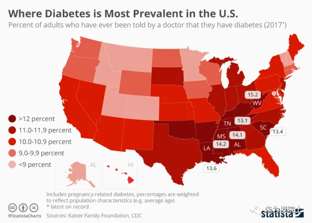 美国运动科学院(National Academy of Kinesiology仅限160人)院士曾担任美国体育测量与评价协会主席(1997-1999年)美国总统体质与竞技体育委员会科学顾问(2003-2006年)美国著名《锻炼与运动研究季刊》)主编(2012-2018年)糖尿病,尤其是II型糖尿病,已经成为21世纪人类的“天敌”。在全球范围内,糖尿病的发病率呈上升趋势,在2016年被列为人类十大杀手之一,造成了近160万人的死亡,而在2000年,当时的死亡人数是不到100万。根据世界卫生组织(WHO)的数据,自1980年以来,全世界糖尿病患者的人数增加了两倍多,从1980年的1.08亿增加到了2014年的4.22亿。在美国,每10个成年人中就有一个人患有糖尿病(90-95%是II型糖尿病),南方是“重灾区”,有的州在2017年就有高达13%以上的成年人患有糖尿病。