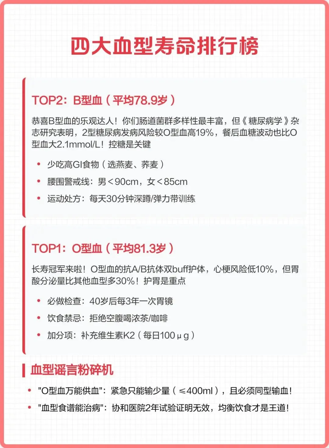 重要提醒:血型只是参考,长寿掌握在自己手中!