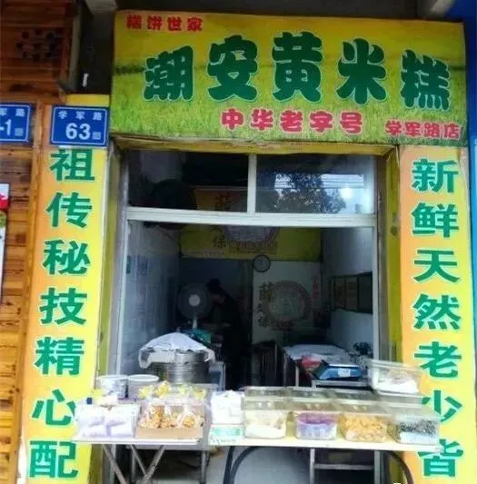 黄米糕是福州特有的一种特色传统小吃,松软可口、绵糯香甜,1872年,潮安黄米糕制作技艺源于连江“薛记依福”始创,主要是制作闽式糕饼,20世纪初,薛文保(第二代)在台江开了一家“潮安糕饼店”,以当时福州传统的黄米糕为主打,兼营多种福州特色糕点,成为不少福州人记忆中的味道。