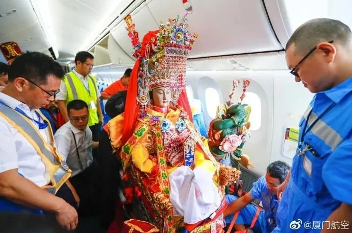 2019年,厦航的VIP旅客妈祖再次踏上飞往泰国的国际航班。为了这趟旅行,湄洲妈祖祖庙组织了332人的护驾团,护驾湄洲妈祖、千里眼、顺风耳等神尊,场面不亚于任何超级巨星。