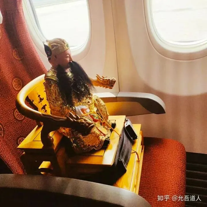 据说在从泰国返程的航班上,妈祖落座后,不少外籍空乘前来跪叩。毕竟信仰空间从庙宇转移到了现代飞机客舱内,对大多数人来说还是罕见的。
