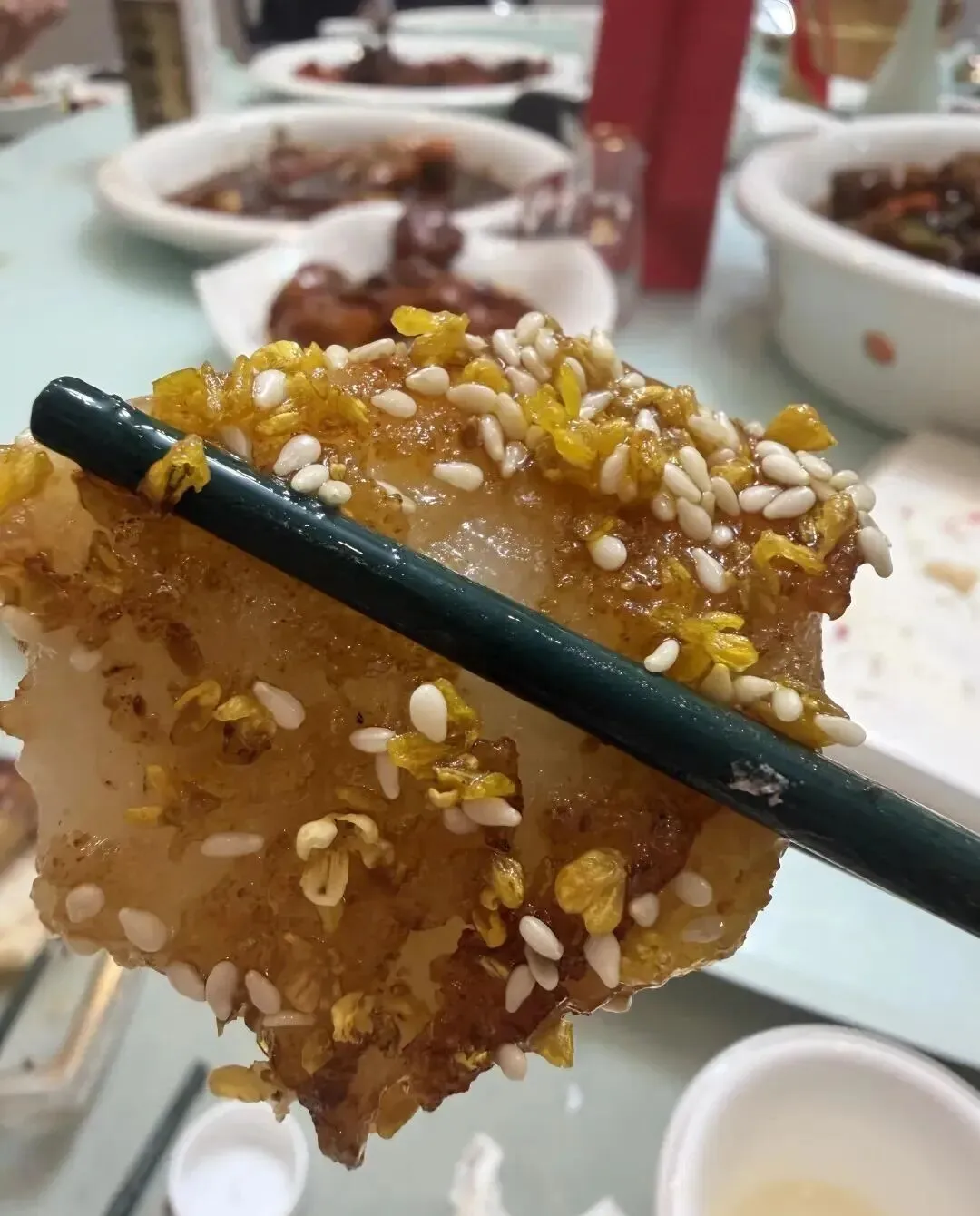 然后我就想起来 , 之前有朋友跟我说过一家店 , 说他们家的桂花糖年糕特别好吃 , 我一直没去 , 这次正好趁着桂花季 , 专门跑了一趟。