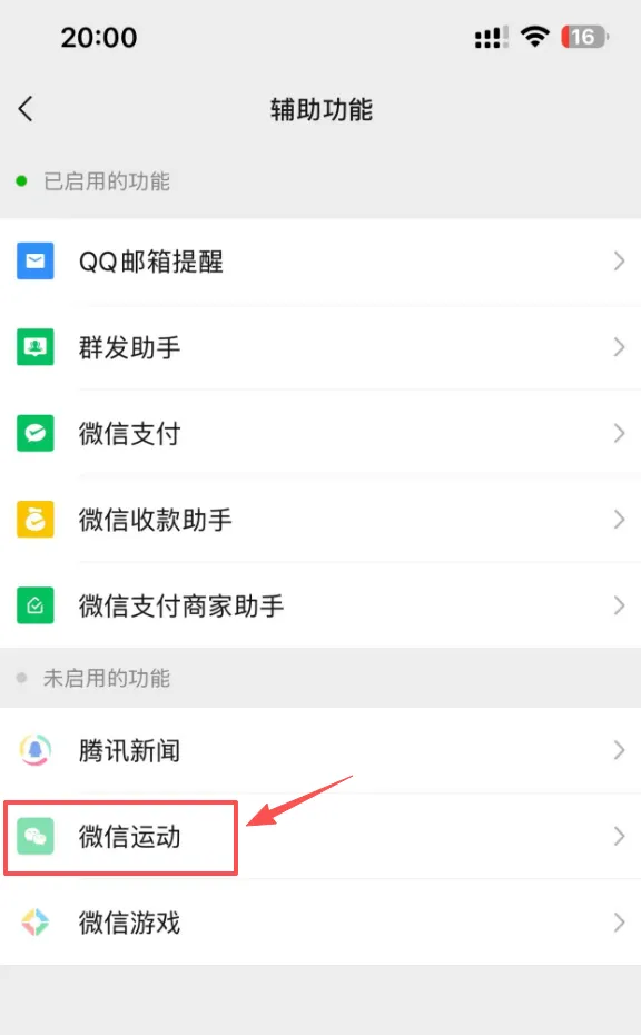 5️⃣ 点击【微信运动】,然后点【启用该功能】