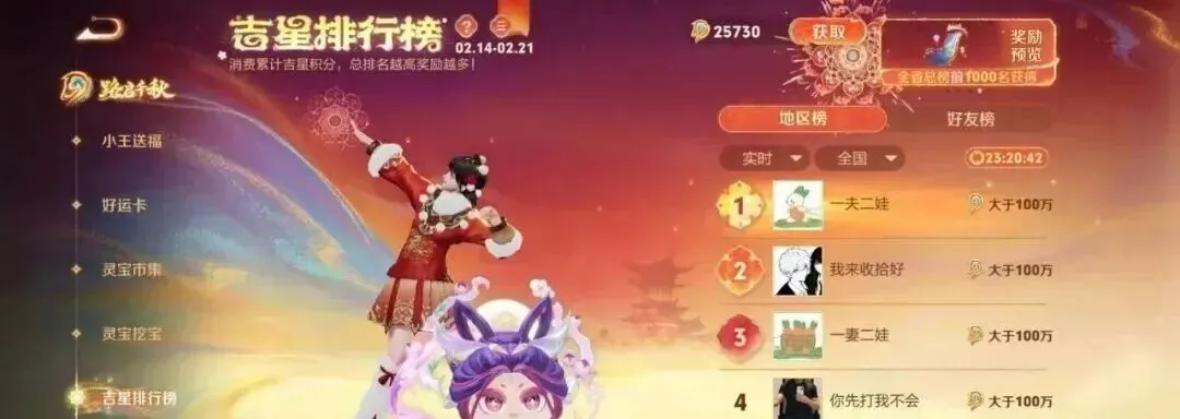 王者荣耀此次春节期间的所有活动,均已全部上架完毕,而备受关注的灵宝市集活动,也已圆满落幕。那些攒够18万小马钱的玩家,想必都已顺利兑换到了心仪的传说皮肤,解锁了专属新春惊喜。除此之外,王者荣耀在21号还正式上线了财神天幕祈愿活动,推出了“马上发财”主题天幕,同时返场蔡文姬限定财神天幕,诚意拉满。不仅如此,近期还陆续上架了好运卡专属新皮肤,比如上官婉儿的春霖将至、韩信的踏浪归,虽说这两款都是直售皮肤,但凭借好运卡折扣,只需1280点券就能全部入手,性价比超高哈。当然啦,在此次众多活动中,还有一个格外吸引氪金玩家目光的,那就是吉星排行榜,想必各位玩家都有留意到吧?这个吉星排行榜其实每年春节都会如期上线,算是官方专门为氪金玩家量身打造的专属活动。