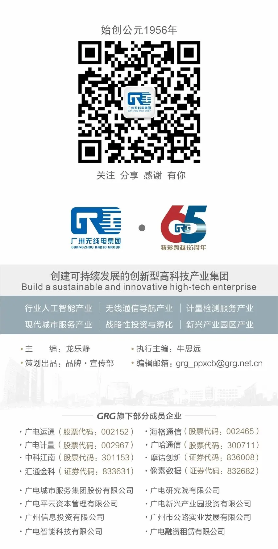 目前,集团控股广电运通(股票代码:002152)、海格通信(股票代码:002465)、广电计量(股票代码:002967)、广哈通信(股票代码:300711)、中科江南(股票代码:301153)、摩诘创新(证券代码:836008)、汇通金科(证券代码:833631)、像素数据(证券代码:832682)8家公众公司,参股上市公司3家,参股新三板挂牌公司2家,各层级子公司超过220家。
