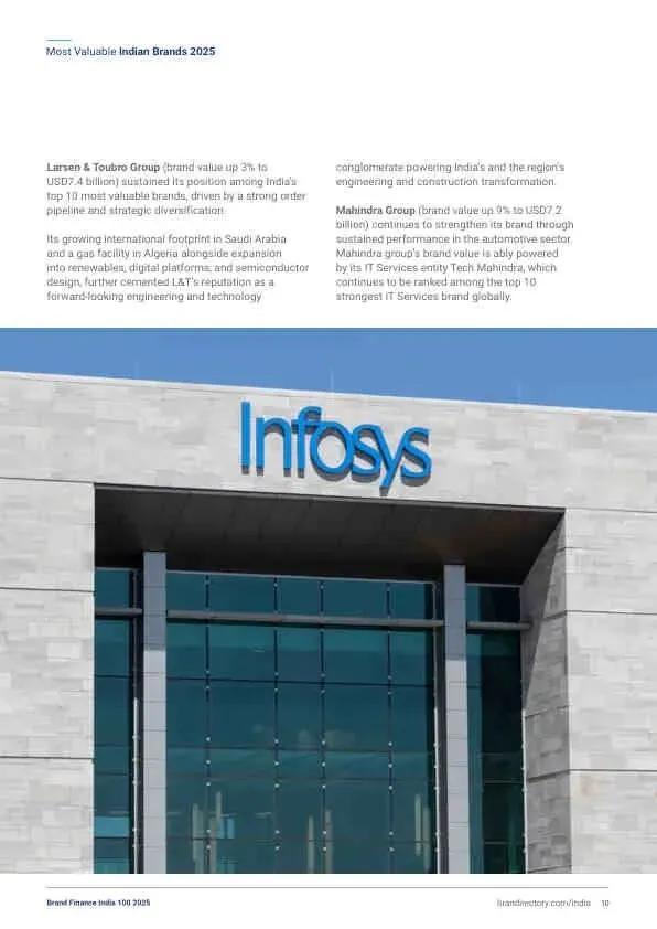 - 亚军: 印孚瑟斯 (Infosys) 品牌价值达163亿美元(+15%),是IT服务领域的全球领导者。