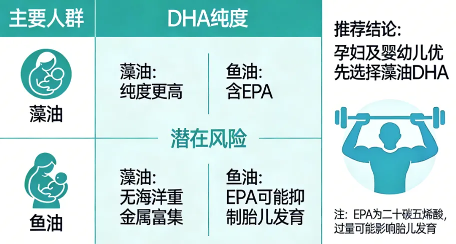 1. 藻油DHA与鱼油DHA如何选择? 藻油更推荐孕妇及婴幼儿:其DHA纯度更高(鱼油含EPA可能抑制胎儿发育),且无海洋重金属富集风险。中老年人可选高纯度鱼油,兼顾EPA的心血管保护作用。
