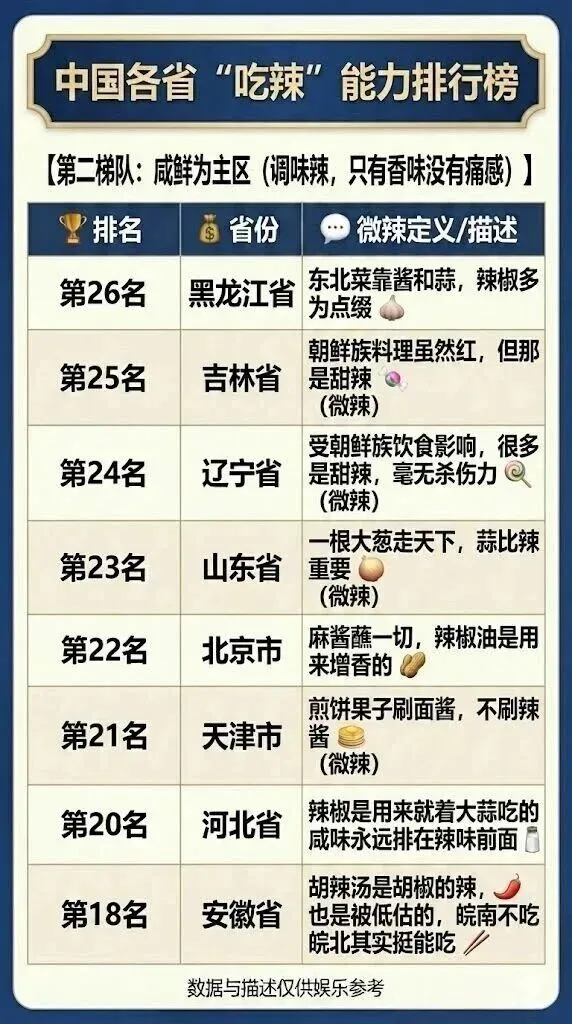 中国各省吃辣能力排行榜