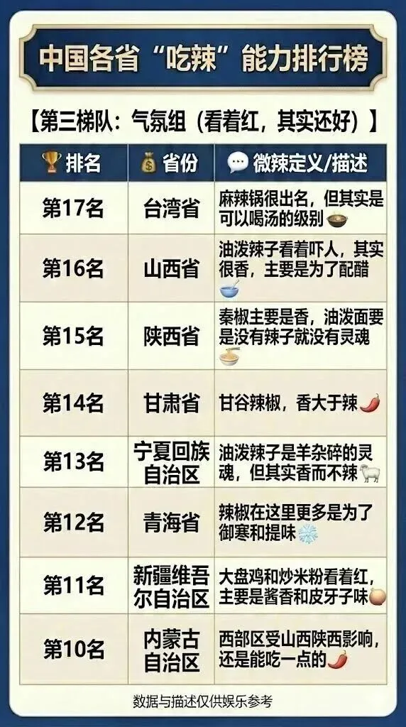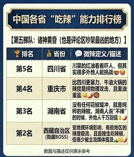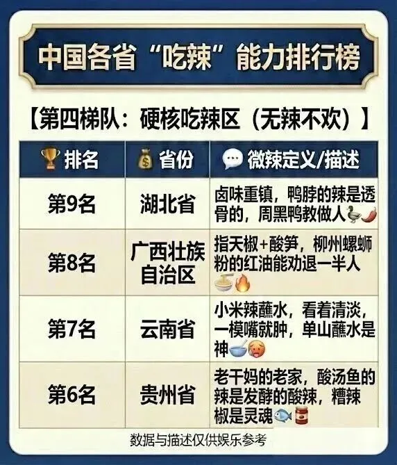 >中国各省吃辣能力排行榜
