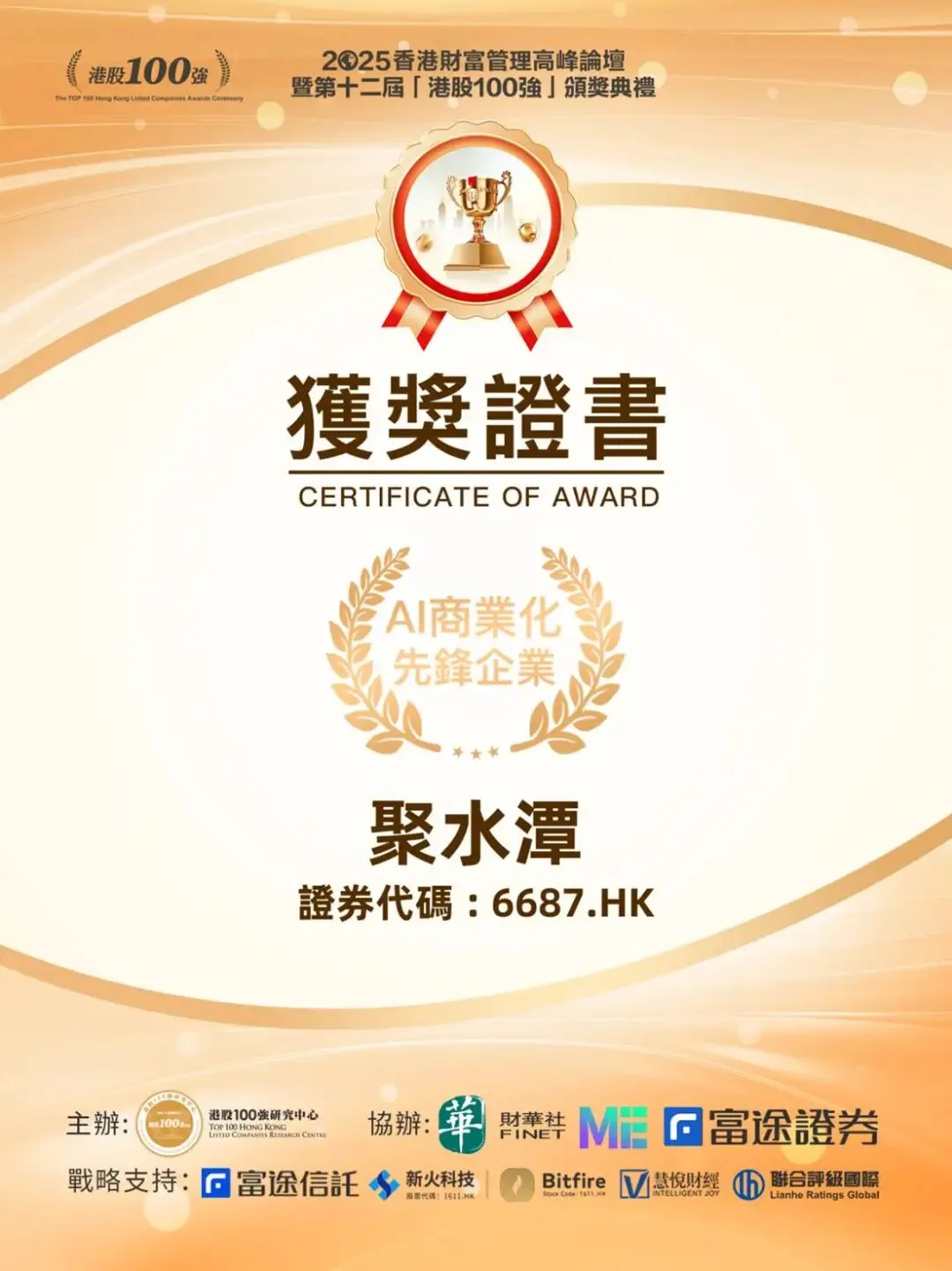 日前,2025香港财富管理高峰论坛暨第十二届「港股100强」颁奖典礼在香港会展中心盛大举行。在2025年香港IPO募资额重夺全球第一、资本市场成绩斐然的背景下,本届榜单汇聚众多行业标杆如腾讯控股、宁德时代、恒瑞医药等,聚水潭与一众优秀企业同台,荣膺“AI商业化先锋企业”称号。