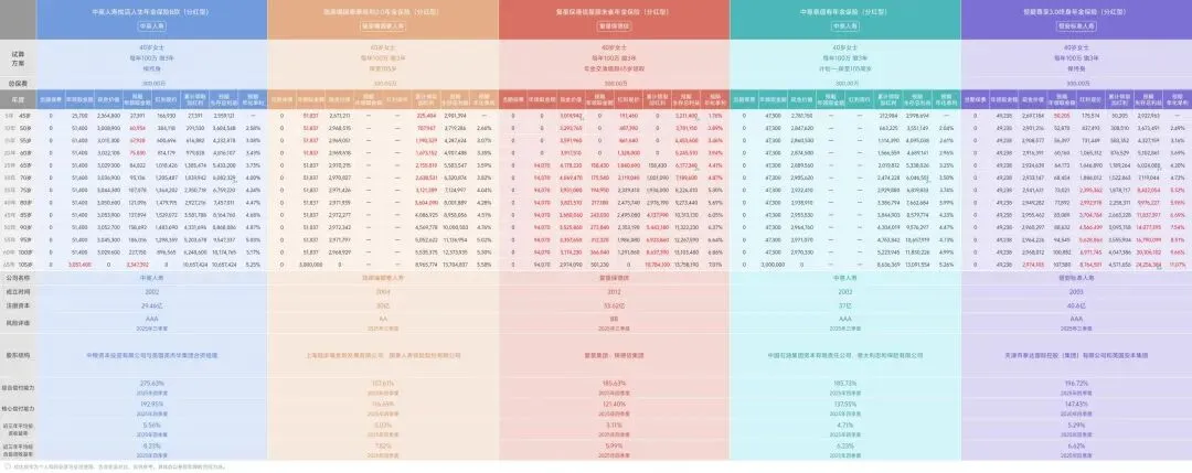 筛选建议:适合规划中期目标(如45岁开始补充收入、子女大学教育金补充)的朋友,既看重公司实力,又极度强调领取后资金的自主支配权。