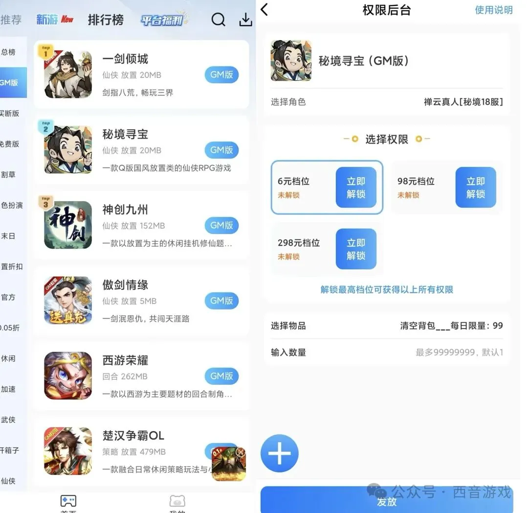 常规专买服断:内玩、凸凸虾、离火(996) 、乐疯玩(GM手游盒子)