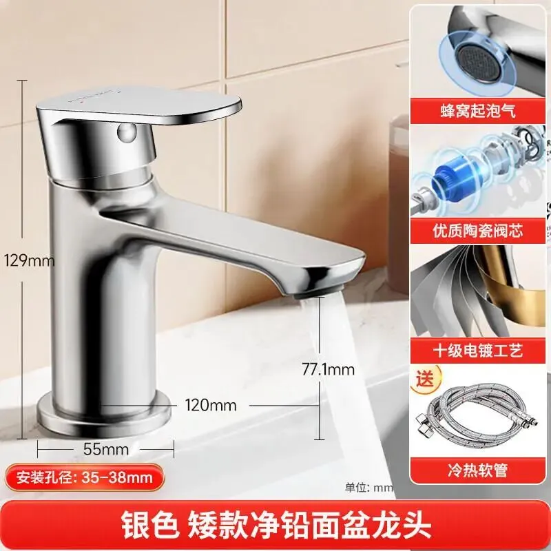 同时,龙头主体支持360°自由旋转,双模式出水,适配多样需求。铸铜本体搭配多层精密电镀工艺,通过72小时盐雾测试,抗腐蚀性强,即使长期接触牙膏沫、洗发水等残留物,一擦即净,久用不易生锈。陶瓷阀芯经过严苛测试,防滴耐磨损,确保长期稳定使用。