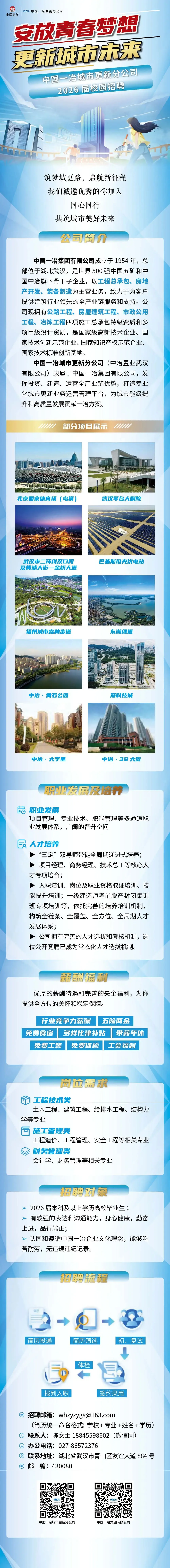 >世界500强骨干子企业招聘 | 提供五险两金、免费食宿,中国一冶城市更新分公司2026届校园招聘