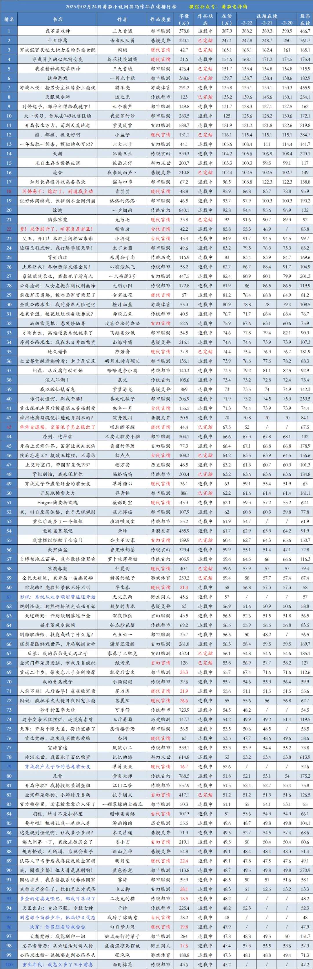 3.部分作品曾更改过书名,本统计以PC端显示的书名为准。