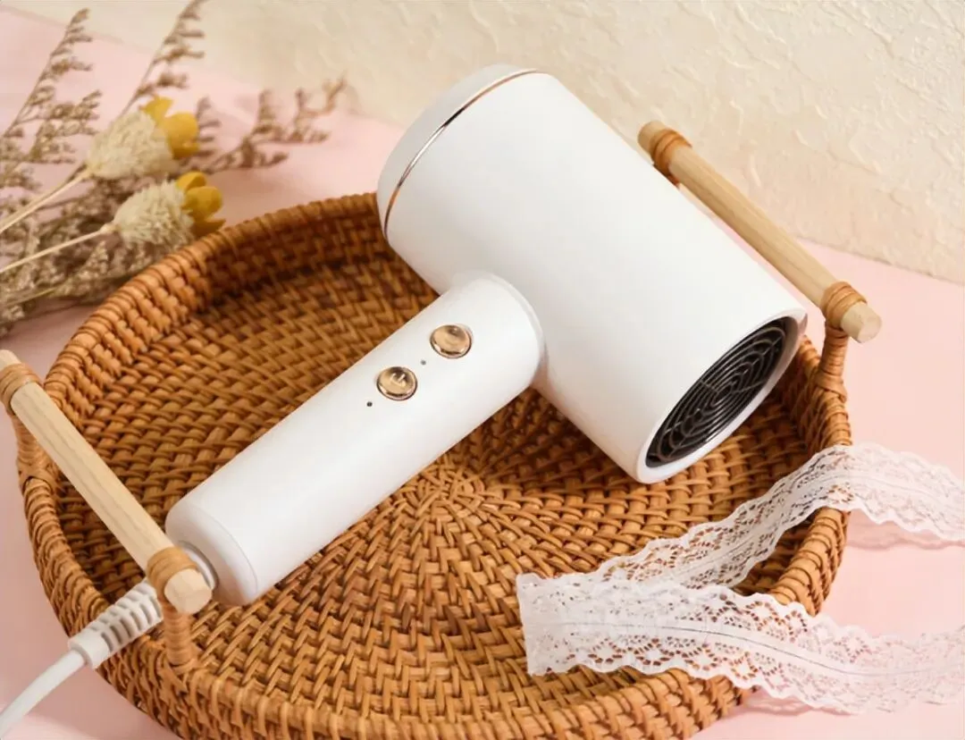 详细解析:主打便携性,适配家用与外出场景。机身可折叠设计,折叠后高度仅18cm,能轻松放入行李箱、化妆包,重量仅380g,举着吹发无负担。操作简洁,2档风速清晰可辨,满足日常干发需求,配备基础防吸发滤网,避免长发卷入,使用更安心。运行噪音控制在57分贝左右,不刺耳,机身简约小巧,不占空间,兼顾家用与外出,是学生党、租房党的优选。