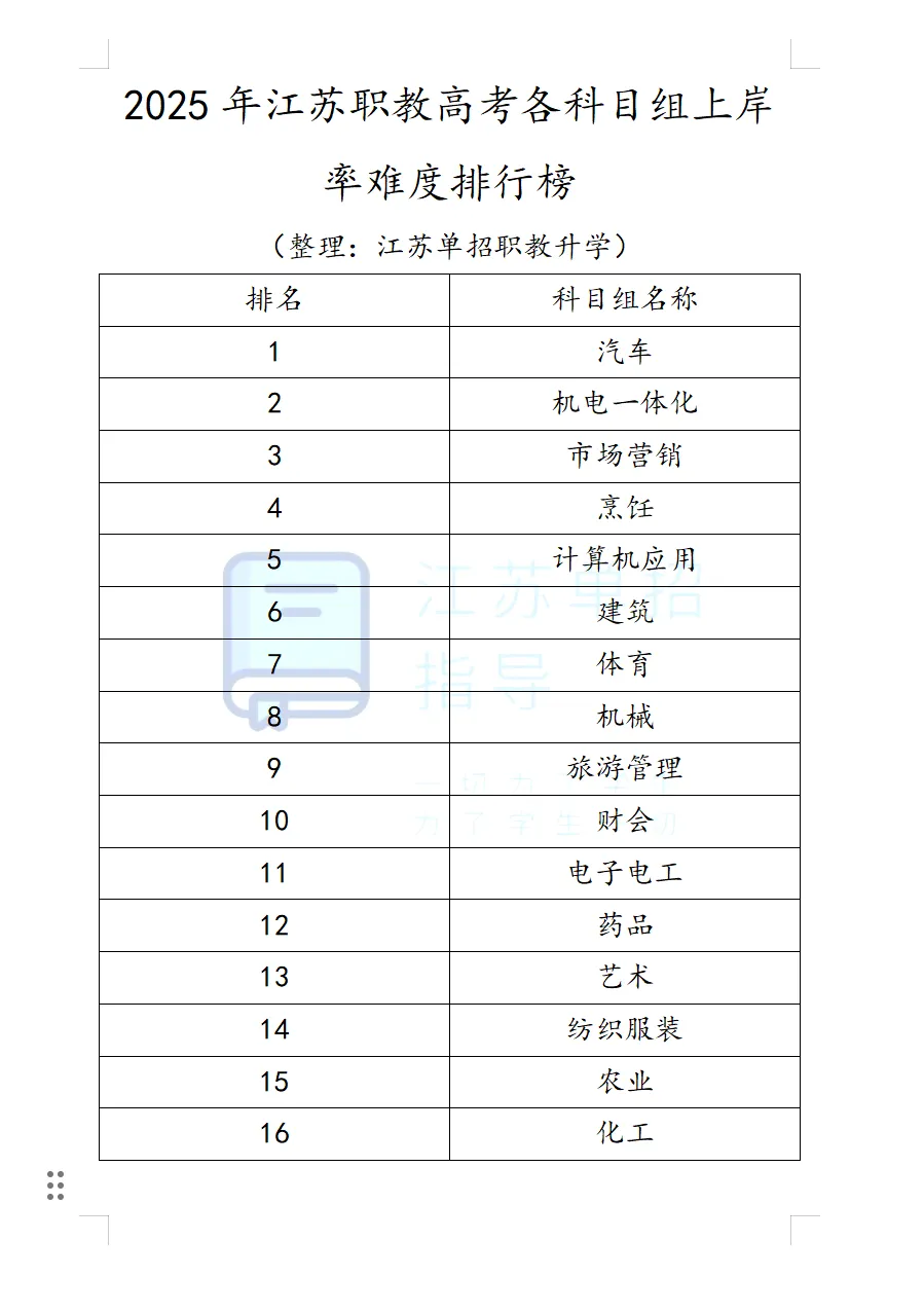 2025年江苏职教高考各科目组上岸率难度排行榜