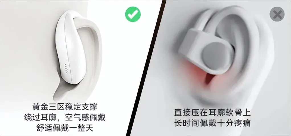 部分开放式耳机的挂耳设计过于紧绷,佩戴不稳,夹力过大,导致耳廓受压,长时间佩戴会出现耳朵发麻、胀痛等问题。而西圣Olite2不会出现这种问题,它在佩戴舒适度上达到了行业前所未有的巅峰,采用ErgoFit2.0分段式贴耳工学设计、黄金3区稳定支撑结构,耳廓适配度达到惊人的99.9%,无论是长时间佩戴还是高强度运动,都能稳稳挂在耳朵上,耳机约7g的重量,彻底消除压迫感。亲肤级液态硅胶包裹,全方位贴合肌肤,久戴无异物感。相比之下,市面上的开放式耳机要么夹耳,要么松垮,而西圣Olite2才是真正做到“隐形佩戴”的存在。